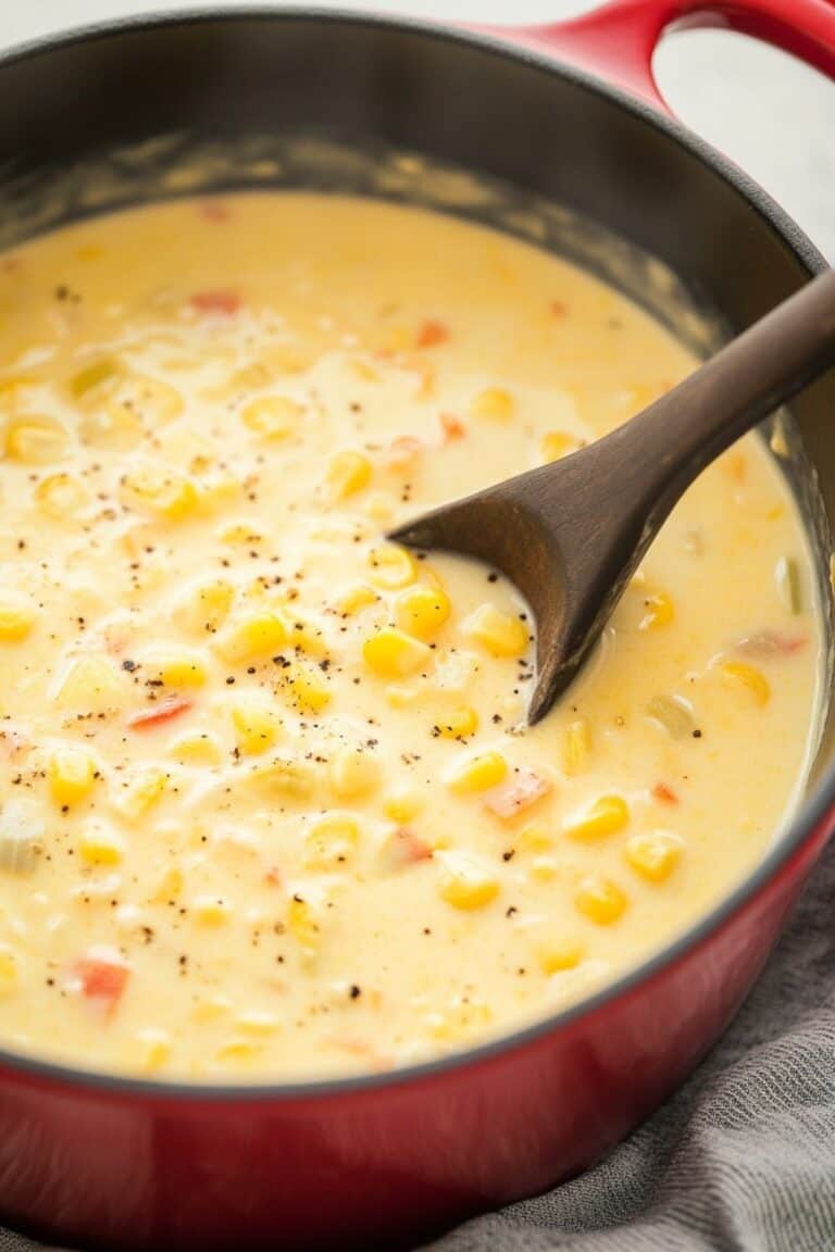Add corn and let the soup simmer until thick and creamy, breaking some of the corn with a spoon if a little texture is wanted.
