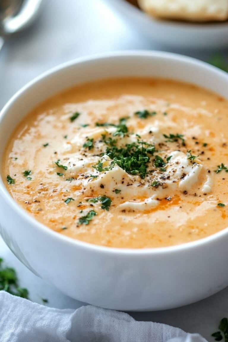 Add cream and a scoop of ricotta at the end, stirring until the soup turns rich and creamy.