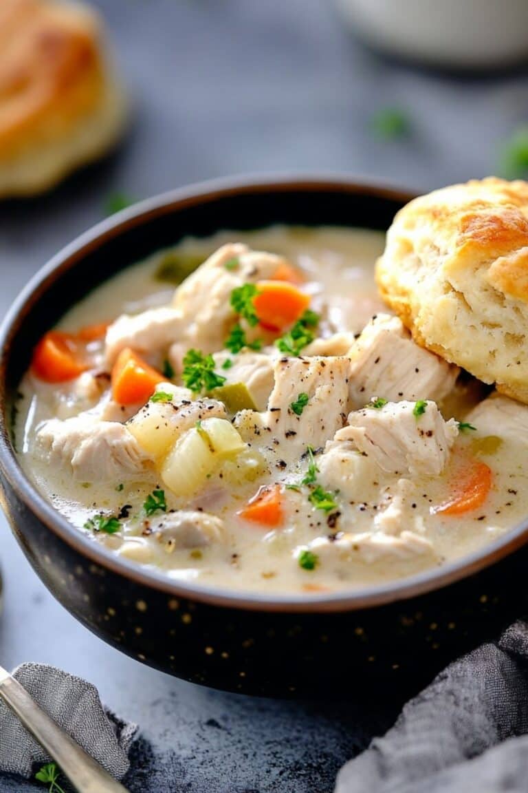 Add shredded chicken, broth, and a splash of cream, letting it simmer gently so nothing separates.