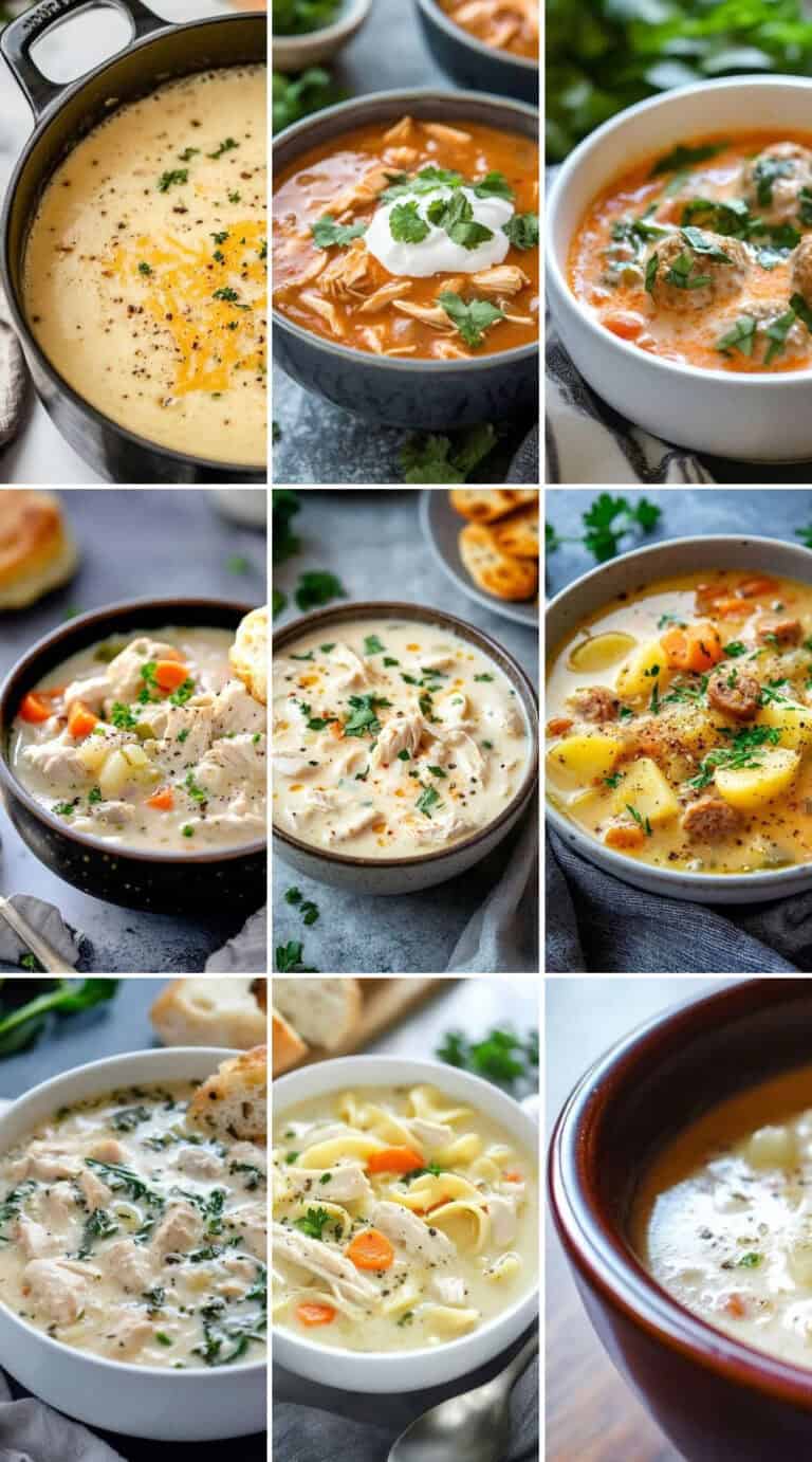 - Queso Soup: Warm milk and broth with onion and garlic, then stir in shredded cheese slowly until smooth and creamy.