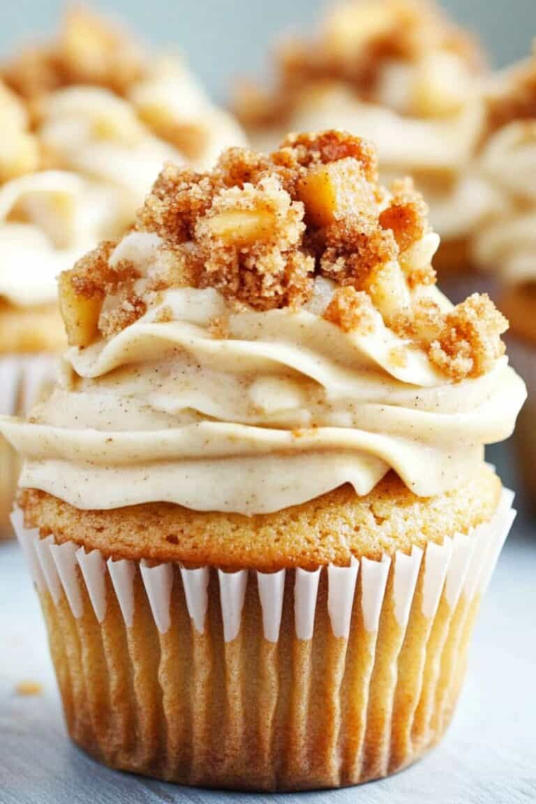 Bake up apple-flavored cupcakes with cinnamon in the batter, then top each one with a buttery crumble before baking.
