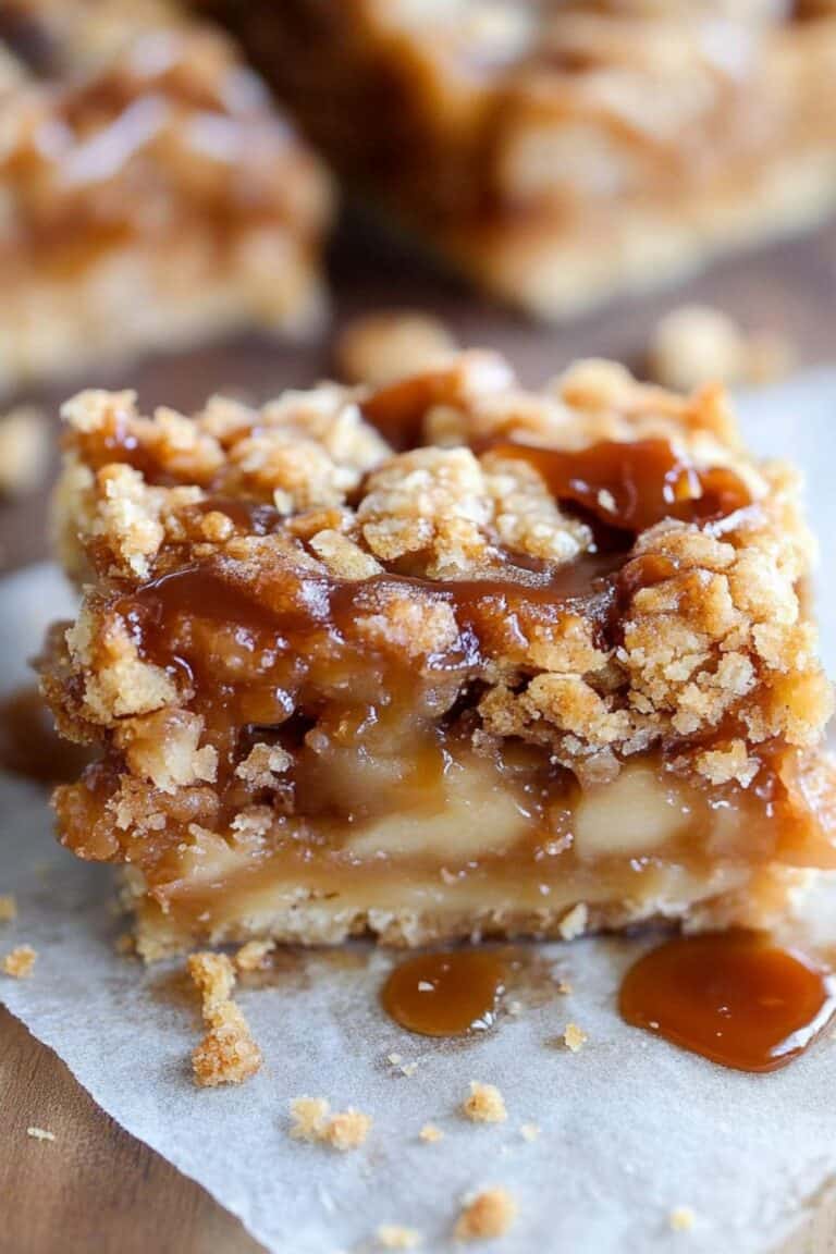Layer sliced apples over a shortbread crust and drizzle caramel sauce on top.