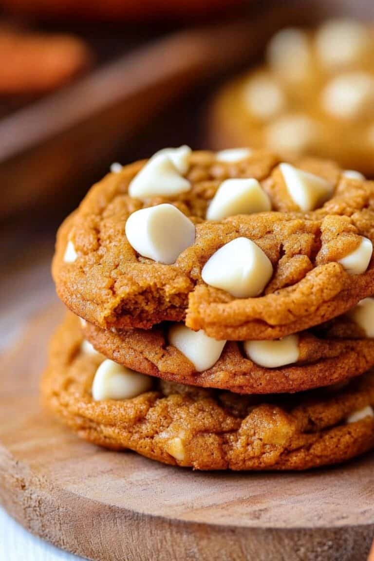 Start with a basic pumpkin cookie dough, then fold in a handful of white chocolate chips.