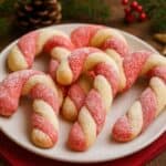 These candy cane cookies are soft, buttery, and full of peppermint flavor. They look impressive on a cookie tray but are surprisingly easy to make at home.