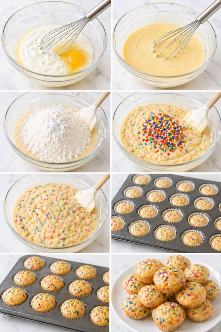 - Gently fold in the sprinkles so they don’t bleed too much color into the batter.