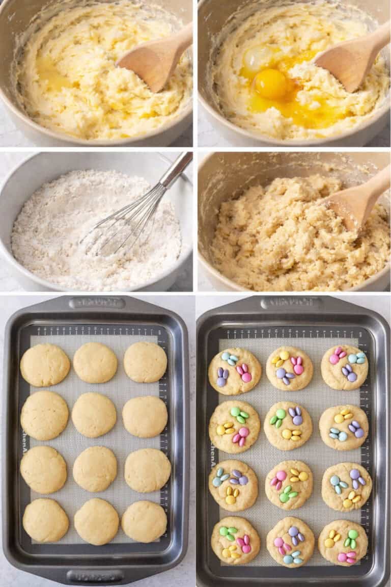 This dough is a classic soft sugar-cookie base — perfect for pressing M&Ms on top without them sinking.
