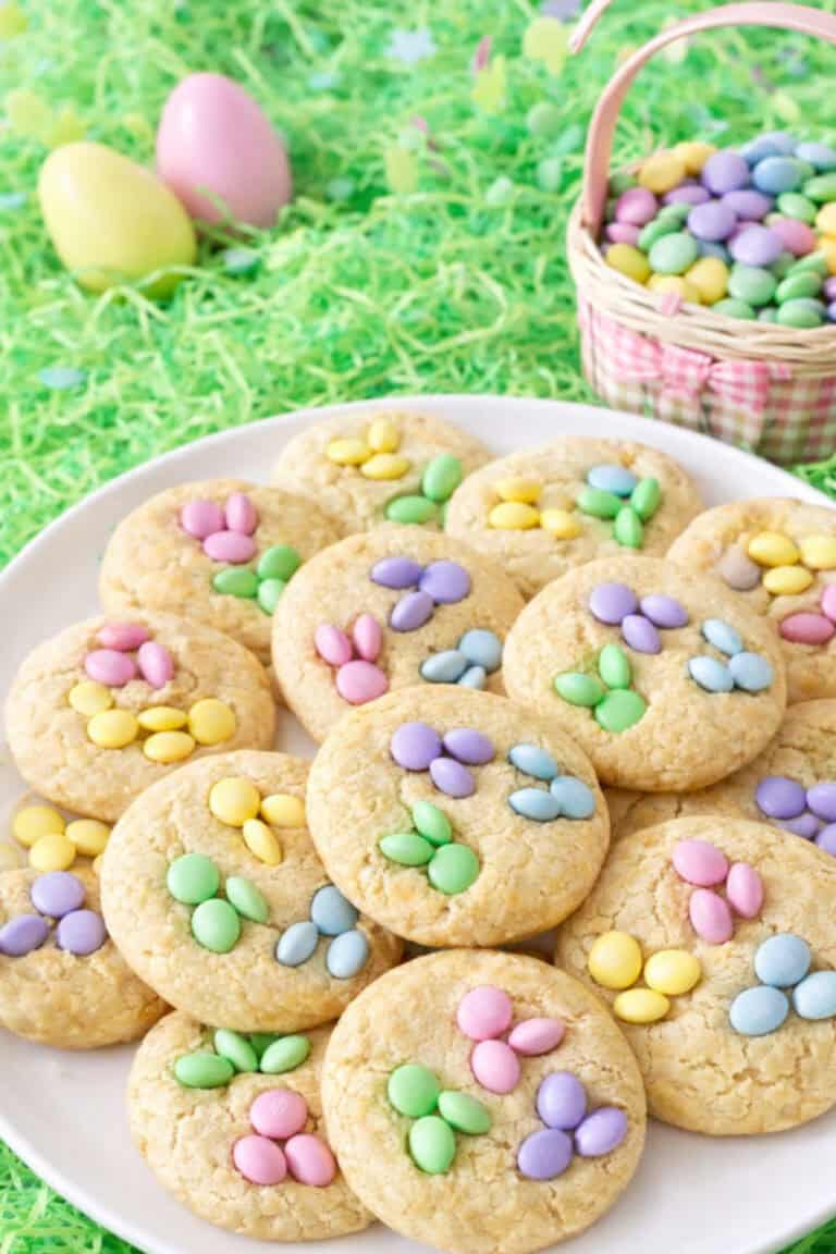 The trick is in the dough — it bakes thick and pale so the bunny M&Ms really pop — and the kids love pushing the candies in before the cookies go in the oven. It’s cute chaos, but the good kind.