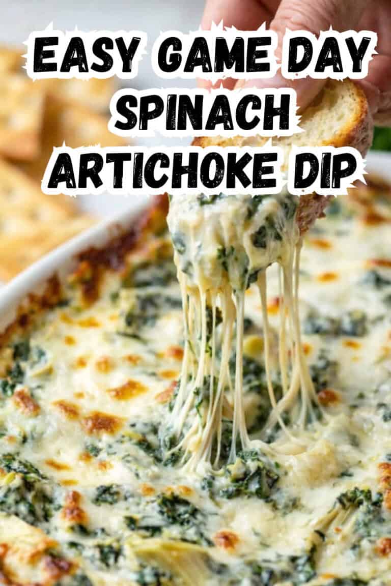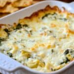 Creamy, cheesy, and honestly hard to stop eating, this spinach artichoke dip always disappears fast at our house!