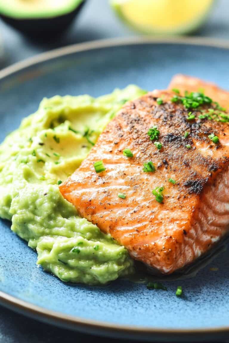 Spread the avocado mash over the warm salmon so it softens slightly from the heat.