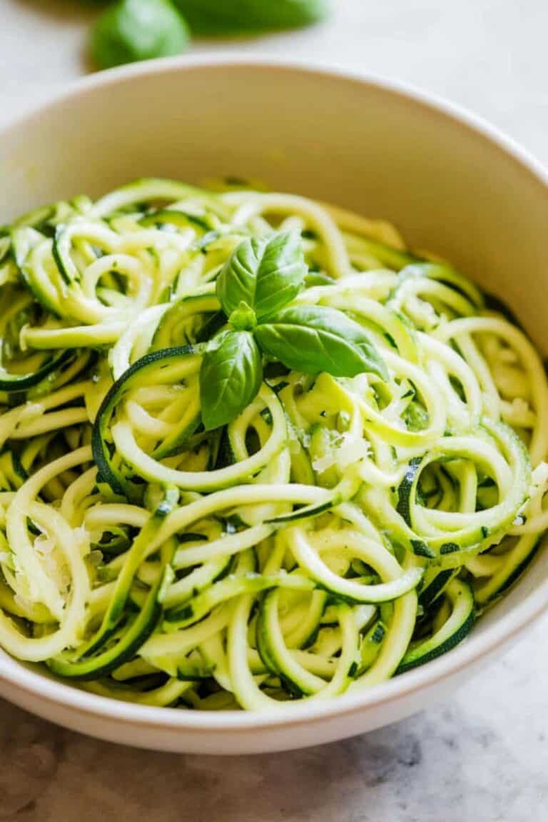 Spiralize or slice zucchini into noodles and pat them dry so they don’t water everything down.