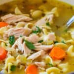 The broth gets so good with the turkey, veggies, and a few herbs tossed in.