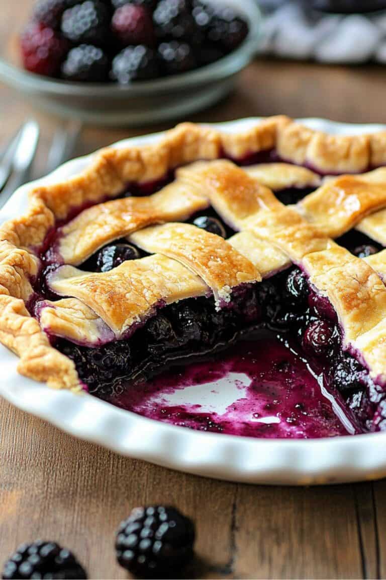 Fresh or frozen blackberries work beautifully here for a blackberry pie, tossed with sugar, cornstarch, and lemon juice.