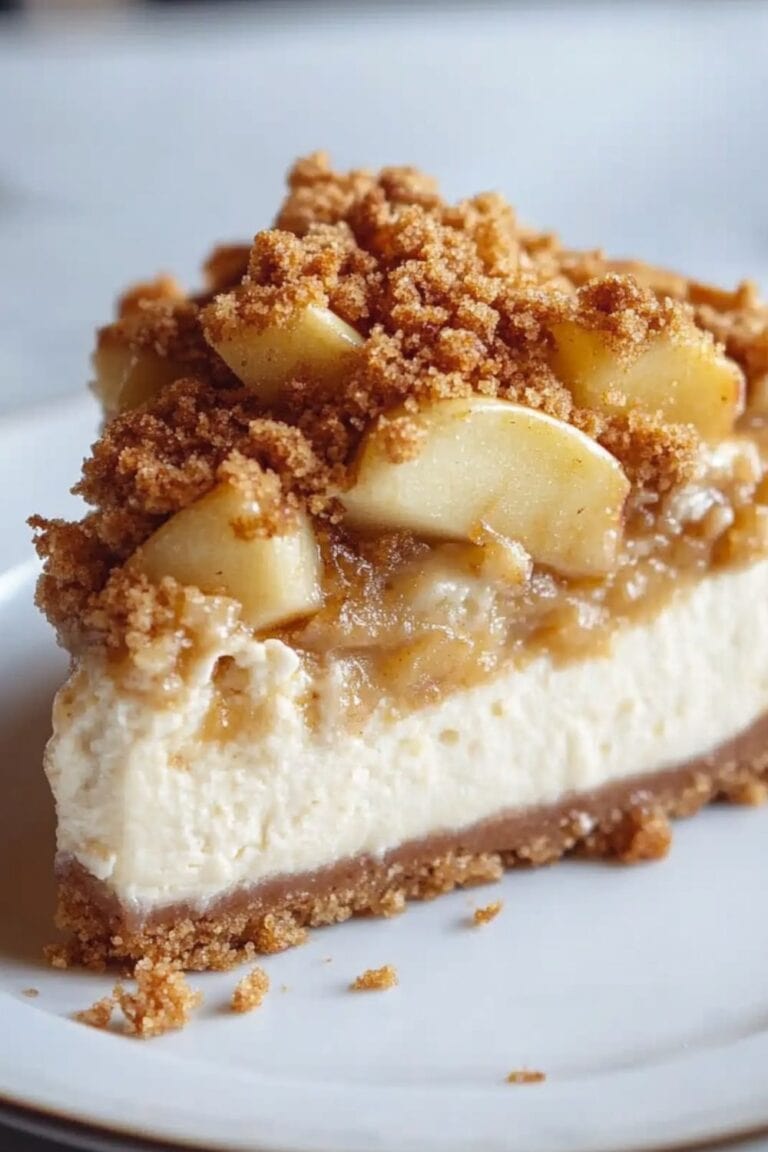 This apple crumble cheesecake bakes up smooth and rich while the crumble gets golden and crisp.