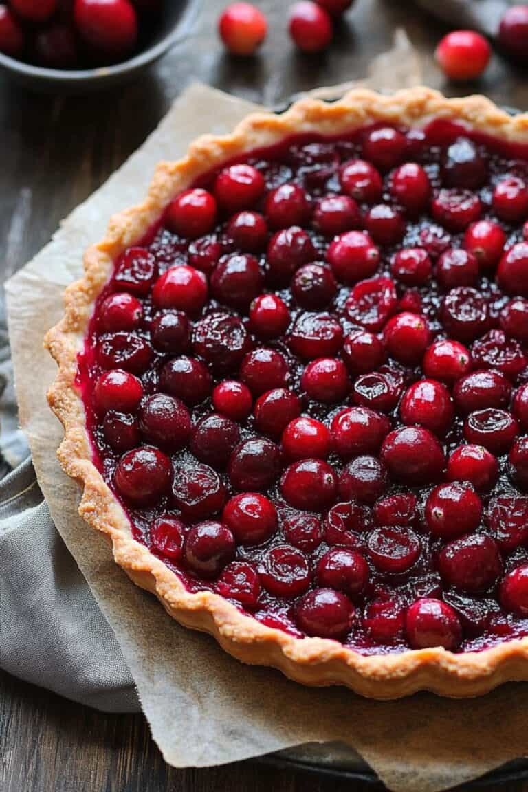 To make a cranberry orange tart, start with a buttery shortcrust that’s baked until crisp.