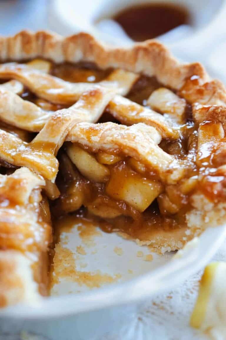 Pile the apples into a buttery pie crust and drizzle salted caramel sauce over the filling before adding the top crust.